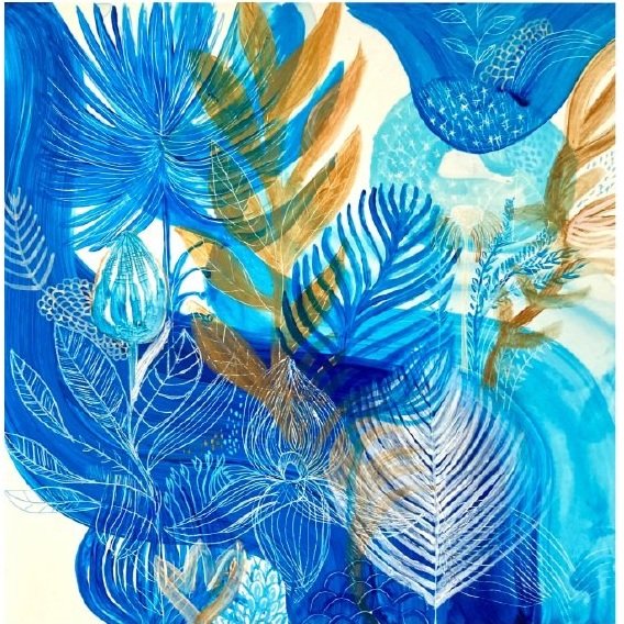 Ana Vanessa is a visual artist based in Miami, Florida. She has dedicated her life to the study of art theory and to the creation and practice of art. Since 2017, the main theme of her work is the nature of the Tropics -its shapes, colors and meanings ― . Leaves, trees, skies, and the sea are transformed through her brushstrokes, colors, and shapes. Her practice includes different media like paintings, collages, sculptural acrylic boxes, art installations and more recently, selected prints.